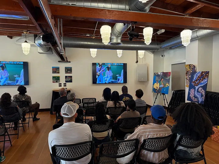 The music playing outside Lore Bookstore wasn’t part of our event. It was Leimert Park’s weekly art walk, soundtrack bleeding through the walls into our gallery space. But one attendee made a connection I hadn’t seen: she linked the sound outside to a clip from the SURROUND SOUND processor showing the 1971 Watts Festival, noting how music became the medium for collective healing then and now. Fifty years collapsed into a single moment of recognition. These are exactly the connections I am seeking to bring worlds together.