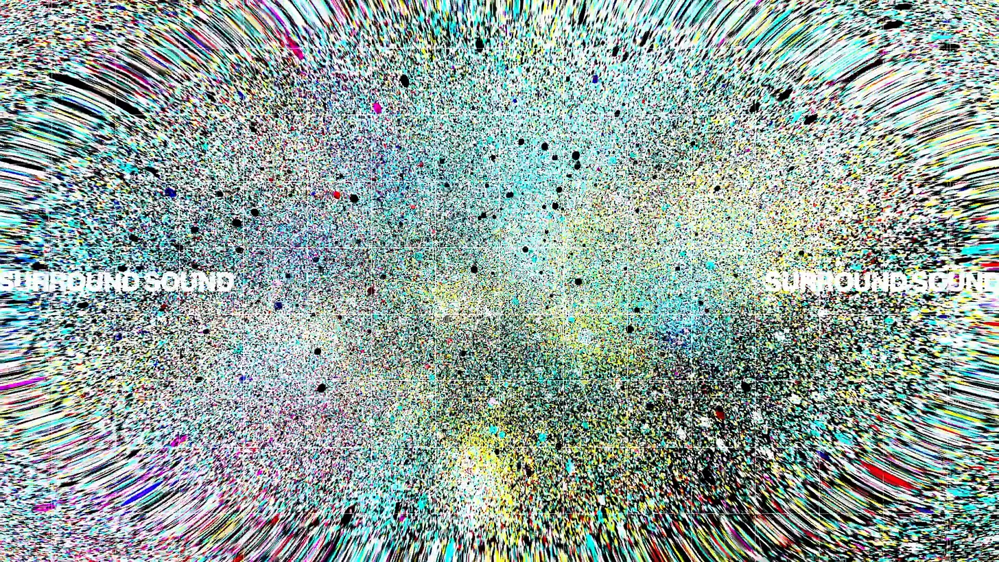 The SURROUND SOUND processor is an interactive 3D environment — a rectangular container that serves as both television (the box that brought images into living rooms) and cage (the frame that tries to contain subjects within a particular narrative). Inside this container, archival clips float as nodes in a semantic field, attracting and repelling each other based on machine learning analysis of the footage itself.