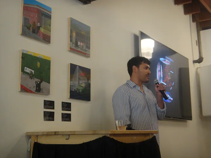 On September 28th, I finally got to show the processor publicly at Virtual Machines, a one-night group show I co-hosted with artists Miela Foster, Natalie Brewster, Theo Hargis, and Izaiah ZayZay + the SBS Quartet at Lore Bookstore in Leimert Park. The event centered on self-expression as a tool of flight within systems of constraint — Miela’s paintings, Theo’s paintings, the quartet’s music, Natalie’s talk on self-expression, and my processor all in conversation.